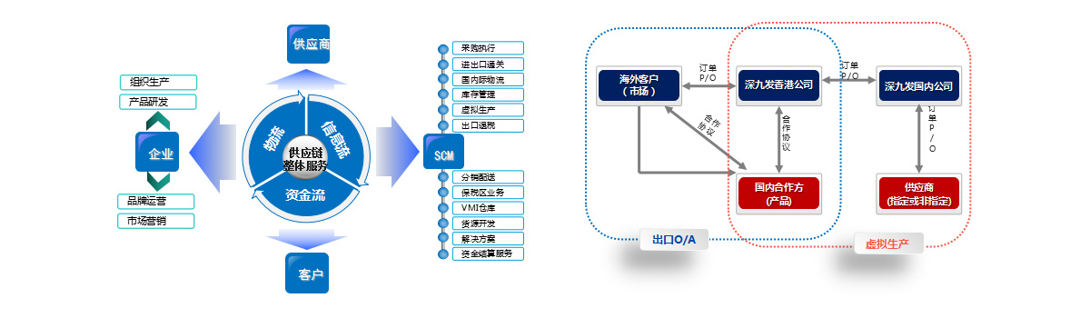 憑借九洲集團(tuán)強(qiáng)大的資本實(shí)力和平臺優(yōu)勢,以及香港做為全球金融、物流中心的便利,香港控股成功的為廣大的國內(nèi)外客戶提供了包括物流、資金流及信息流在內(nèi)的供應(yīng)鏈金融服務(wù)。業(yè)務(wù)類型包括以下五大類:虛擬生產(chǎn)、轉(zhuǎn)口貿(mào)易、代理進(jìn)口、代理出口以及控貨代理采購。